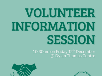 We’re holding another Volunteer Information Session on Friday 12th December at 10:30am in the Dylan Thomas Centre.
